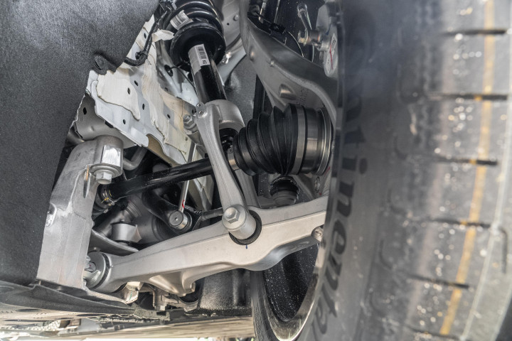 5.3米的车长,本来以为转弯会很费劲,结果智能后轮转向系统直接封神——后轮能双向转10度,双车道掉头一把就过,"蟹行模式"更是神器,在狭窄的老胡同会车,直接斜着挪过去。前双叉臂+后五连杆悬架,再加上智能魔毯空气悬架,过减速带时车身几乎没什么颠簸,滤震效果比GL8还舒服。