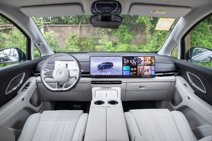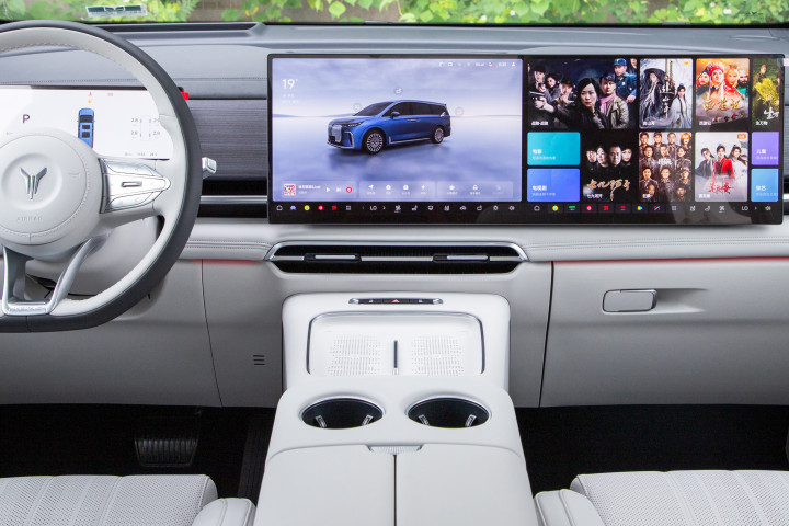 细节配置更是贴心到骨子里。13L双门智能冷暖冰箱,-6到50度可调,夏天放冰饮、冬天存热汤都没问题,24小时不断电,长途旅行随时能喝到温度刚好的饮品。VOYAH Sound全景环绕音响有22个HiFi级扬声器,听交响乐时就像坐在音乐厅里,音质比很多豪华车还好。全车四个50W无线充电板,前排后排都能同时快充,再也不用抢充电器了。双靠背小桌板带防滑凹槽,放电脑、写文件都稳得很,商务办公太方便了。