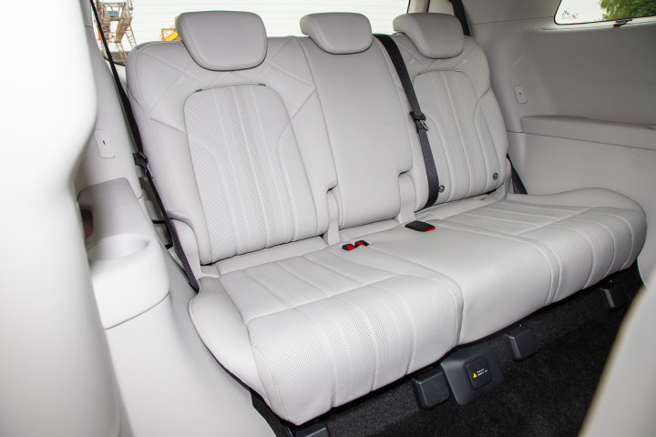 别以为三排是"小板凳",梦想家的三排绝对是"宝藏区域"。云柔温感座椅坐垫和靠背都能加热,还新增了两倍大风量吸风设计,夏天坐也不闷。四向电动调节让你总能找到舒服的姿势,380mm的坐垫高度,就算1米8的大高个坐进去腿也能伸直。最良心的是三排座椅靠背用了钢板强化设计,通过了110km/h超美标追尾测试,老人小孩坐最后排也放心。